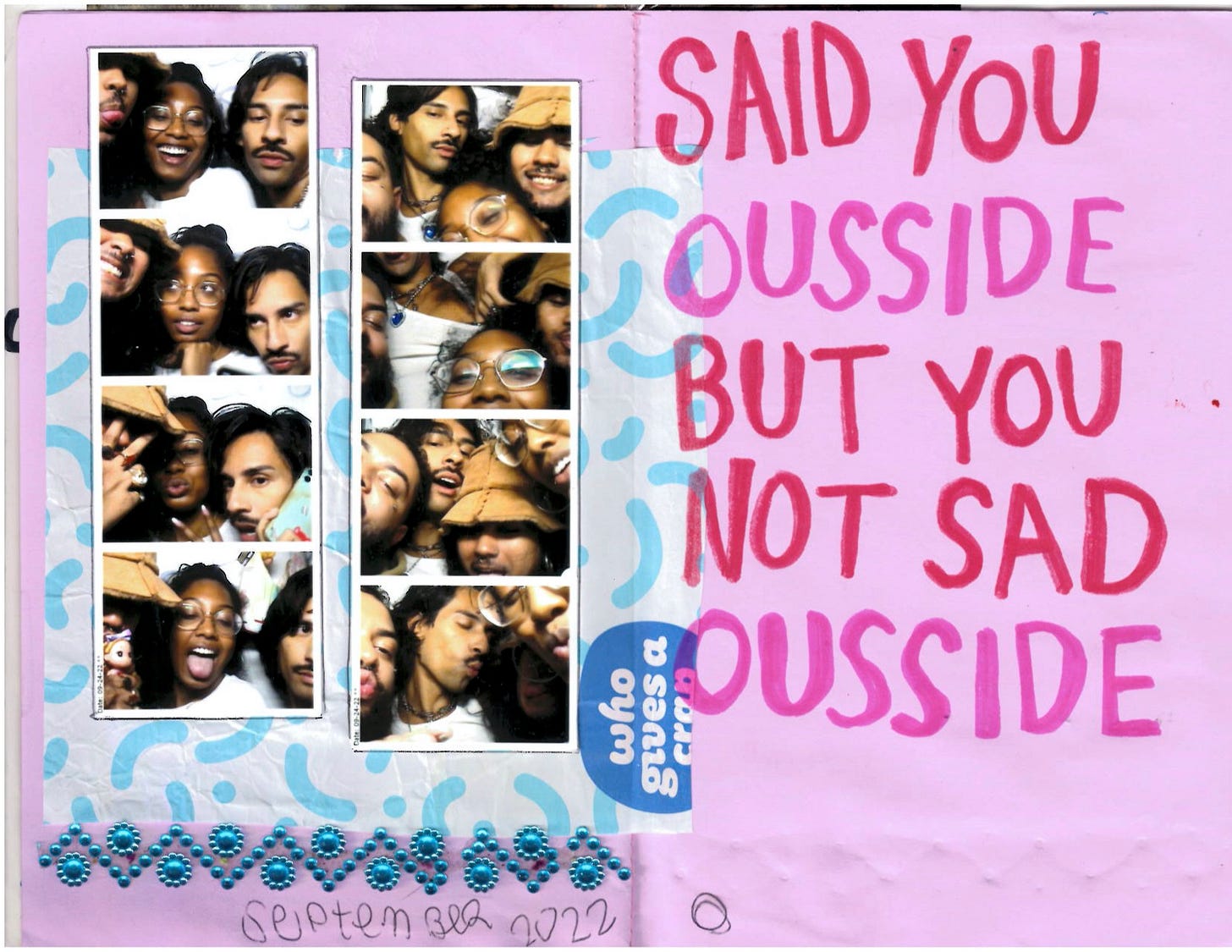 Some of my favorite passages are from being a drunk 21 year old in the back of an uber trying to figure out why my crush didn’t like me back and feeling absolutely CRAZY. Reading them back now makes me chuckle and seeing the bumpy penmarks with a sticker from the event I was at brings the moment back so intensely. This has been a great process as time goes on to look back at moments that felt chaotic and unprecedented to re experience them with more life experience that makes them absurd. I hope all of my writing and personal processing seem absurd at a future point because that means I’ve worked past them to a point that they’re not a black abyss of confusion.